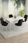 Meri Serisi Beyaz 80x132 Açılabilir Mdf Masa Yemek Odası Takımı, Mutfak Masa Takımı 4 Adet Sandalye