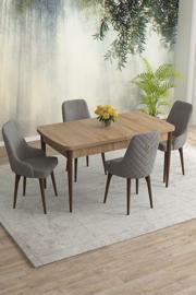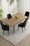 Asaella Mobilya Meri Serisi Meşe Desen 80x132 Açılabilir Mdf Masa Yemek Odası Takımı, Mutfak Takımı 4 Adet Sandalye