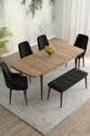 Meri Serisi Meşe Desen 80x132 Açılabilir Mdf Masa Yemek Odası Takımı,Mutfak Takımı 4 Sandalye 1Bench