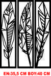 Meriç Lazer Ahşap 3'Lü Kuş Tüyü Duvar Dekoru