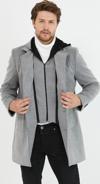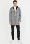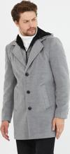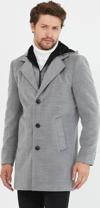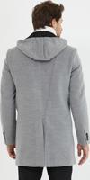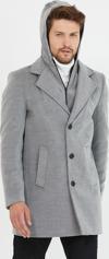 Yün Karışımlı Kaşe Kapüşonlu Önü Fermuarlı ve Düğmeli Uzun Kaban.