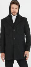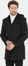 Modarar Erkek Kapşonlu Normal Kesim Siyah Kaşe Kaban RAR01268