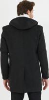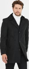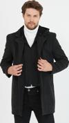 Erkek Kapşonlu Normal Kesim Siyah Kaşe Kaban RAR01268 - Image 1