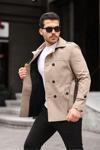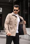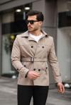 Erkek Krem Mevsimlik Astarlı Kemerli Kruvaze Trençkot