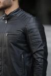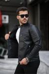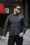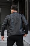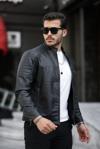 Erkek Model İçi Kürklü, Fermuarlı, Ön Göğüs NAKIŞ Detaylı Deri Ceket Mont.