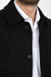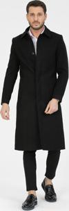 Erkek Siyah Dar Kesim Uzun Yün Karışımlı Kaşe Gömlek Yaka Palto&Kaban