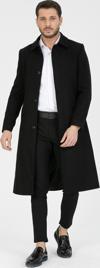 Mero Life Erkek Siyah Dar Kesim Uzun Yün Karışımlı Kaşe Gömlek Yaka Palto&Kaban