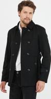 DeepSEA Erkek Siyah Pötikare Desenli Dik Yaka Dar Kesim Hakim Yaka Kaşe Kaban 2407003 - Image 1