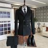 Deepsea Erkek Siyah Pötikare Desenli Dik Yaka Dar Kesim Hakim Yaka Kaşe Kaban 2407003