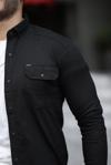 Mero Life Erkek Siyah Slim Fit Dar Kesim Kot Gömlek