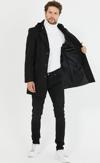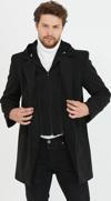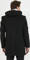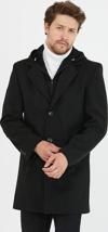 Yün Karışımlı Kaşe Kapüşonlu Önü Fermuarlı ve Düğmeli Uzun Kaban.