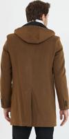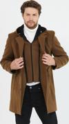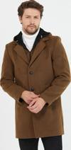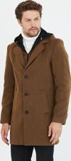 Yün Karışımlı Kaşe Kapüşonlu Önü Fermuarlı ve Düğmeli Uzun Kaban.