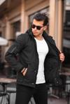 Mero Life Outdoor Kapüşonlu Su Ve Rüzgar Geçirmez Kapitone Içi Kürklü Elyaf Dolgulu Şişme Siyah Softshell Mont