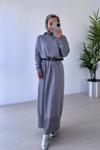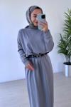 Gamze Zincir Detaylı Tesettür Elbise Gri - Image 1