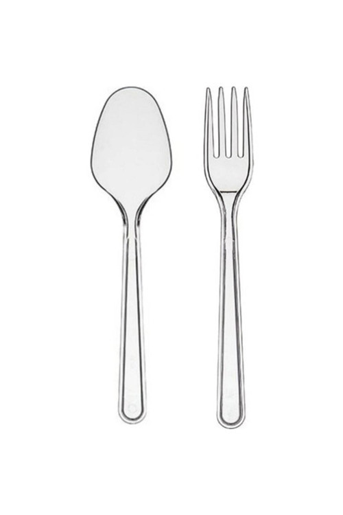 Mert Ambalaj Kalın Sert Plastik Çatal Ve Kaşık Seti 200 Adet Lüks Büyük Plastik Kaşık Ve Çatal Şeffaf