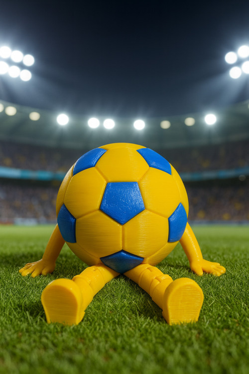 Bu 3D futbol topu figürü, sarı ve lacivert renkleriyle dikkat çeker.