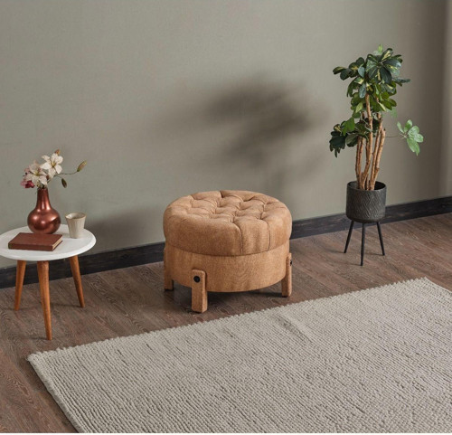 Modern tasarımıyla evinizin dekorasyonuna şıklık katan yuvarlak formda puf
