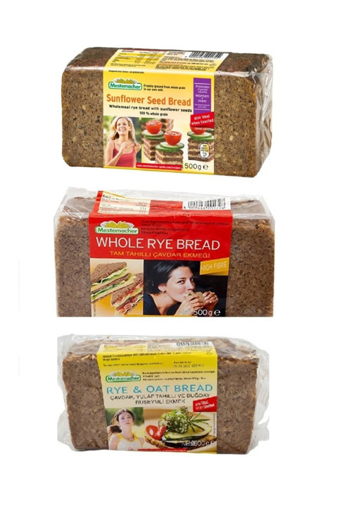 Mestemacher 3'lü Alman Ekmek Seti - Ayçekirdekli Çavdarlı, Tam Tahıllı ve Yulaf Çavdar Ruşeymli Tam Tahıl Ekmeği 500g X 3 Adet