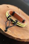 Şık beylerin yeni gözdesi Metal Aksesuarlı Sarı Siyah Renk Deri Erkek Bileklik modeline size sahip olun.