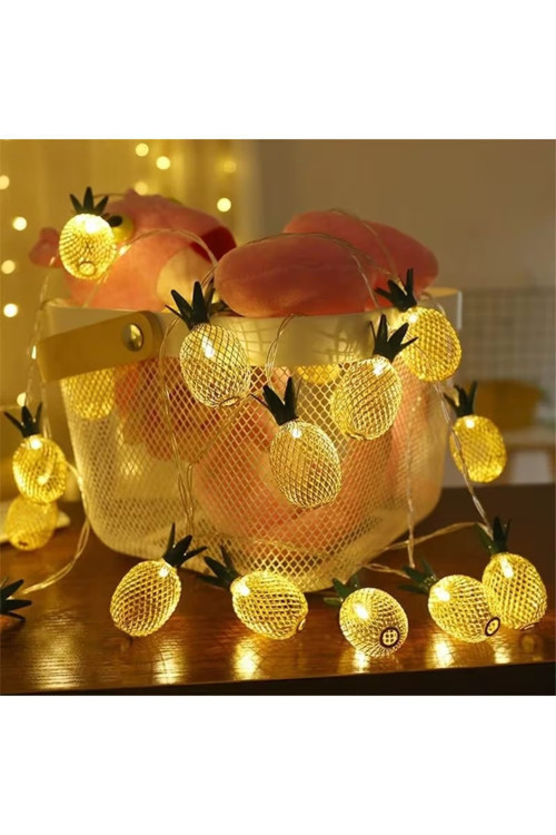 Bakgelal Metal Ananas Figürlü 10lu LED Işık Zinciri, Dekoratif Ev, Parti, Yılbaşı ve Oda Süsleme Aydınlatma