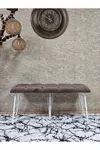 Zafir Metal Beyaz Tel Ayaklı 100 cm Puf Bench - Puf - Bench - Oturak - Mutfak Oturağı - Antre Oturağı Kahverengi Renk 100 x 40 Boyut/Ebat
