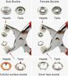 Çıtçıt düğmeler 4 parçadan oluşur – 2 x kapak, 1 x taban ve 1 x perçin Pense bacakları çıtçıtların sıkı bir şekilde takılmasını ve kumaş üzerinde güvenli bir şekilde durmasını sağlar.