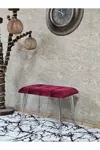 Zafir Metal Krom Tel Ayaklı 60 cm Puf Bench - Puf - Bench - Oturak - Mutfak Oturağı - Antre Oturağı Bordo Renk 60 x 40 Boyut/Ebat