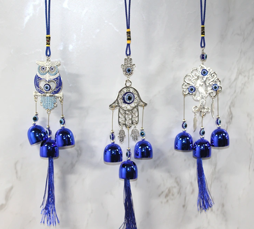 Metal Nazar Boncuğu Çan Model 6, geleneksel nazar boncuğu motifleri ve zarif metal çan detaylarıyla ev dekorasyonunuzu tamamlayan mistik bir aksesuardır. Nazar boncuğunun kötü enerjileri uzaklaştırdığına inanılırken, metal çanların çıkardığı huzur verici ses ortamınıza sakinlik katar.