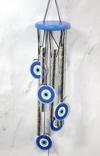 METAL RÜZGAR ÇANI MODEL 7Ürün ÖzellikleriMetal Rüzgar Çanı Model 7, geleneksel nazar boncuğu figürleri ile süslenmiş estetik ve dekoratif bir üründür. Metal boruları ve dayanıklı ipleri sayesinde uzun ömürlüdür. Hafif rüzgarlarla birlikte çıkardığı melodik ve huzur verici sesler, iç ve dış mekanlarda mistik bir atmosfer yaratır. Balkon, bahçe, teras veya iç mekan süslemesi için şık bir aksesuardır.Paket İçeriği1 Adet Metal Rüzgar Çanı
