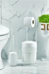 Depa Metal Standlı Yuvarlak Kovalı & Kağıtlıklı & Fırçalıklı Beyaz Banyo Takımı