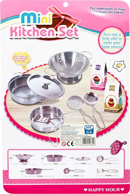 Çocuğunuzun hayal gücünü ve yaratıcılığını geliştirecek olan MEGA Metal Tencere Tava Seti ile tanışın! Bu set, minik aşçılar için mükemmel bir oyun arkadaşı olacak. Çocuklarınızın mutfakta kendilerini gerçek bir şef gibi hissetmelerini sağlayacak bu set, hem eğlenceli hem de öğretici bir deneyim sunuyor. Dayanıklı metal malzemeden üretilmiş olan bu tencere ve tavalar, çocukların güvenle oynaması için tasarlanmıştır. Parlak metal yüzeyi ile dikkat çeken bu set, çocukların ilgisini çekecek ve onları saatlerce eğlendirecek.