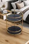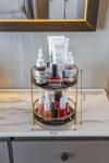 Metaltan Home Gold Banyo Kozmetik Takı Düzenleyici Mermer Desenli Tablalı Çok Amaçlı 2 Katlı Organizer Küçük Boy