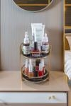 Çok amaçlı kullanım sunan bu banyo organizer, kozmetik ürünlerinizden takılarınıza kadar her türlü eşyanızı düzenli bir şekilde saklamanızı sağlar.