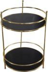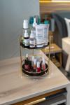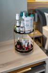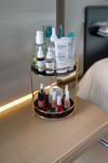 Metaltan Home Gold Banyo Kozmetik Takı Düzenleyici Siyah Mermer Ahşap Tablalı Çok Amaçlı 2 Katlı Organizer