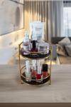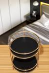 Metaltan Home Gold Banyo Kozmetik Takı Düzenleyici Siyah Tablalı Çok Amaçlı 2 Katlı Organizer Küçük Boy