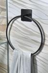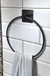 Metaltan Home Kare Yapışkanlı Siyah Yuvarlak Havluluk Yapışkanlı Havlu Askısı Yuvarlak Banyo Havlu Askısı