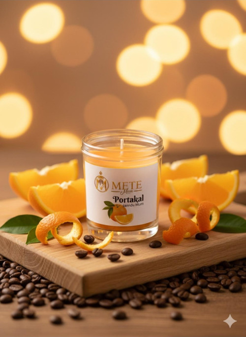Kış aylarının sıcaklığını ve neşesini evinize taşıyın! Portakal aromalı bardak mumumuz, canlı turuncu rengi ve cam kavanoz içindeki şık sunumuyla göz doldurur.