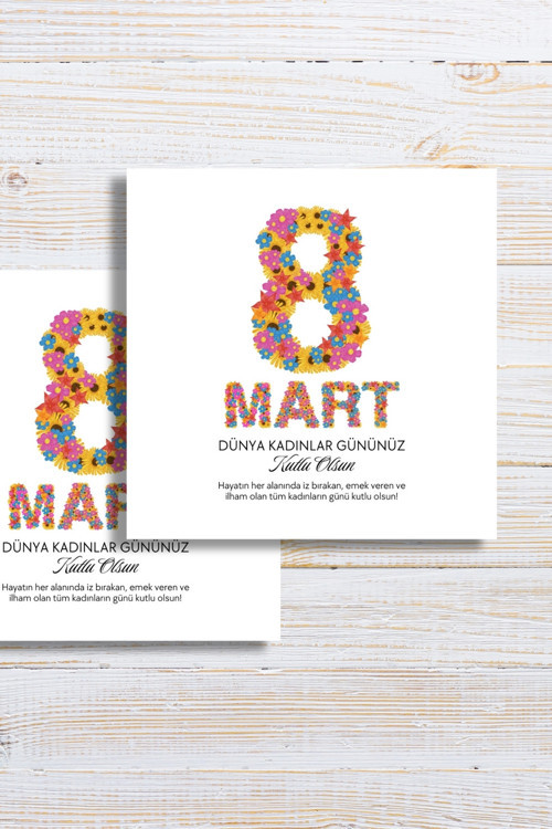 8 Mart Dünya Kadınlar Günü Tebrik Kartı 50 Adet, 8 Mart Dünya Kadınlar Günü Hediye Bileklik Kartı