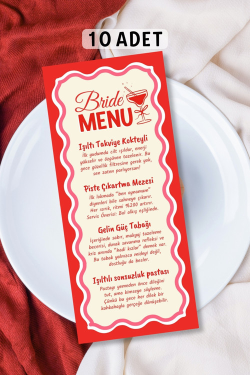 Metranya Bride Menü Kartları 10 Adet Bekarlığa Veda Partisi Nedime Kartı Bride To Be Nişan Düğün Gelin Oyun