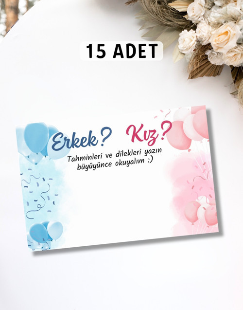 Metranya Cinsiyet Belirleme Partisi Kız mı Erkek mi 15 Adet Baby Shower Bebek Dilek Hatıra Tahmin Anı Kartı
