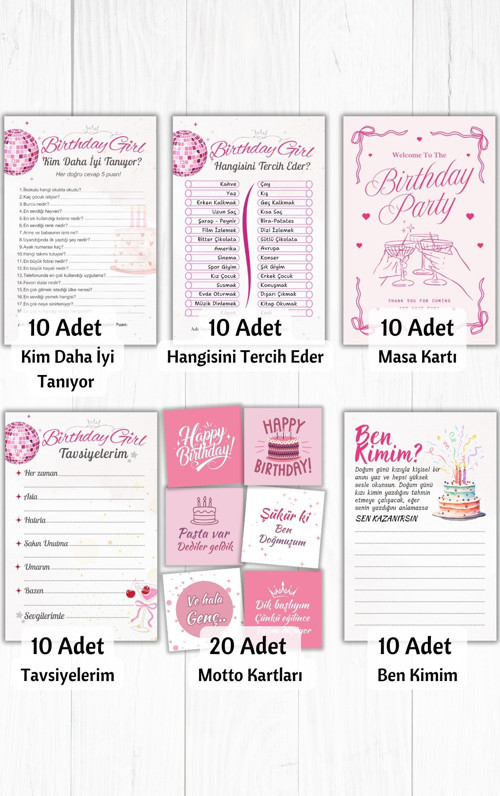 Doğum Günü Partisi Kart Seti, 70 Adet Oyun Kartı Happy Birthday Konsepti Sevgiliye Hediye Pasta Süsü