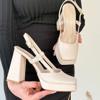 İNF-260 Beyaz Günlük Arkası Açık Baret Tokalı Topuklu Bayan Ayakkabı - Image 1