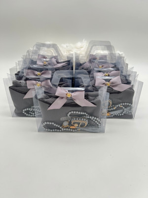 10 Adet Çanta Görünümlü Kutu İçinde Flamlı Örtü, İnci Tesbih Ve Taşlı Zikirmatik Hediyelik Set