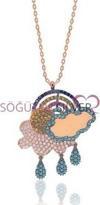 925 ayar gümüş rose zirkon ve turkuaz taşlı mevsimler kolyesi...