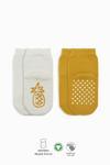 Meyve Figürlü Kaymaz Soket Çorap 2'li Ekru Hardal