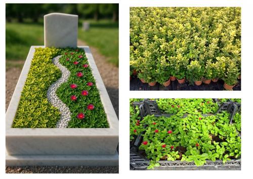 Tunç Botanik MEZAR - KABİR BİTKİ SETİ - 60 ADET 2 ÇEŞİT KALICI BİTKİ (Sarı Gold Taflan-Kırmızı Buz Çiçeği)