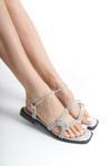 MİA026-1551 Kadın Gümüş-Siyah Taşlı Abiye Günlük-Düğün-Eğlence-Tatil Sandaleti