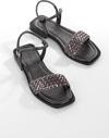 İmia sandali ile tanışın - Platin rengi biyeden yapılmış, elde örülmüş üst saya ve içi komaz ip ile destekli saraç örgülü biyeden yapılmış arkalığı ile zarafeti ayaklarınıza taşıyın. Her adımınızda parlayan kristal taş detaylı toka ile bileğinizde lüksün ve şıklığın keyfini çıkarın.