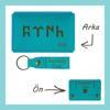 Miaju Koyu Turkuaz, Tarihine Aşık Olana Göktürk Alfabesiyle Hazırlanmış Özel Cüzdan & Anahtarlık Set