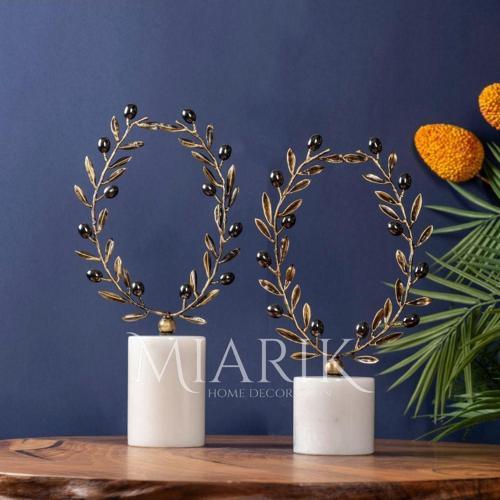 MIARIK DESIGN & DEKORASYON Miarik Design & Dekorasyon Dekoratif Mermer Kai̇Deli̇ Zeytin Dali 2'li Dekoratif Obje Bi̇Blo